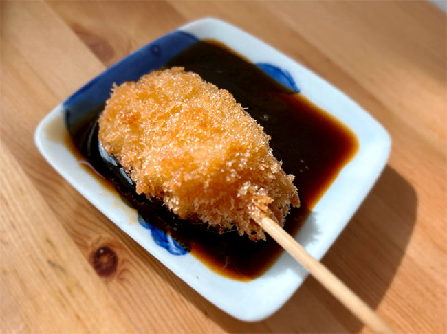 添付の串かつソースを小皿に取ってつけながら食べた。
