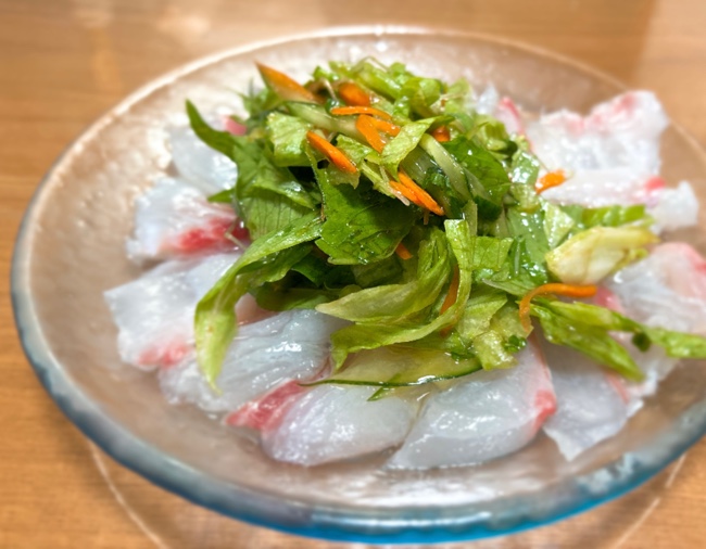 で、たんぽぽもちょこっと1品。 真鯛のカルパッチョ。