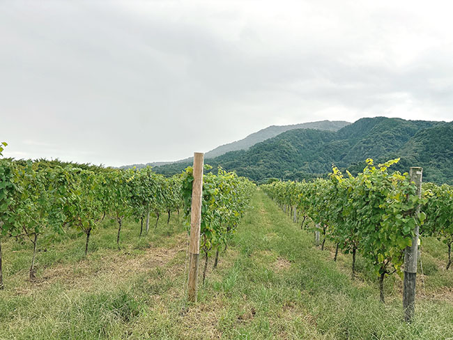収穫を終えた葡萄畑や