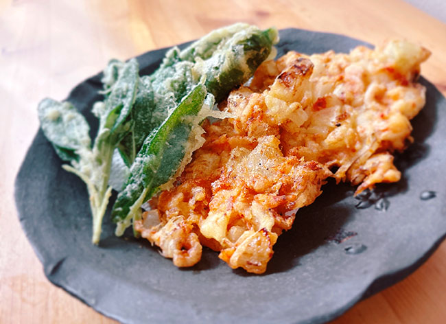 生の桜えびが入手できたので、いそいそとかき揚げ。