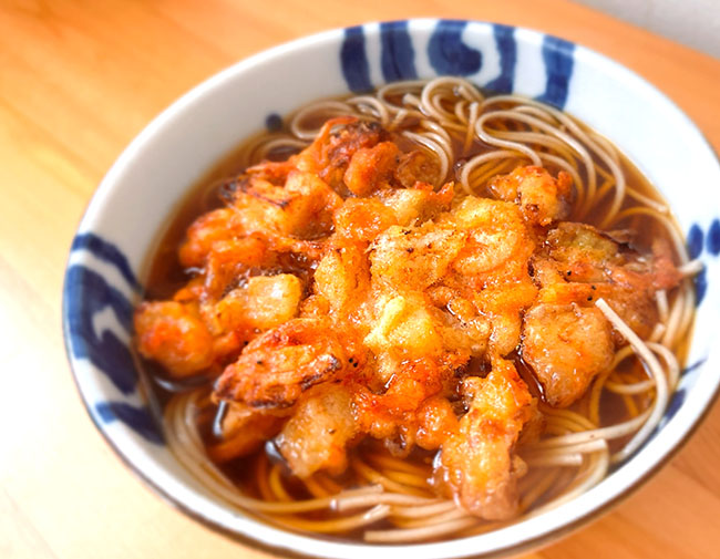 桜えびのかき揚げを作ったら、翌日のお昼はお蕎麦!がお約束。