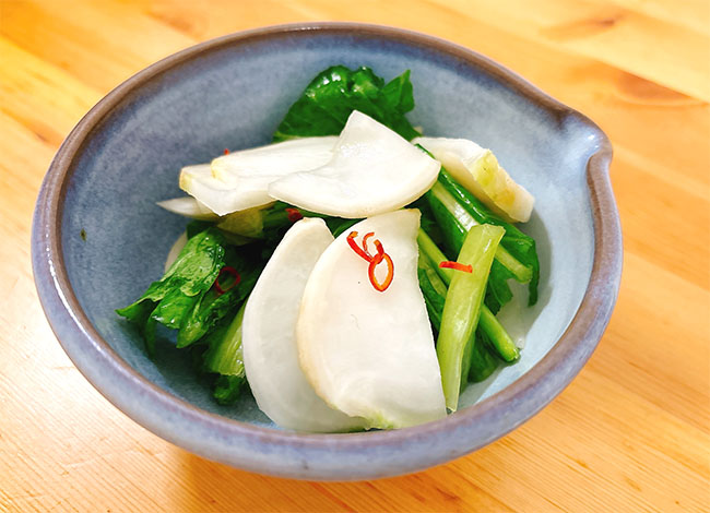 小ぶりで皮も柔らかそうだったので、皮を剥かずにざくざく刻んで浅漬けにした。