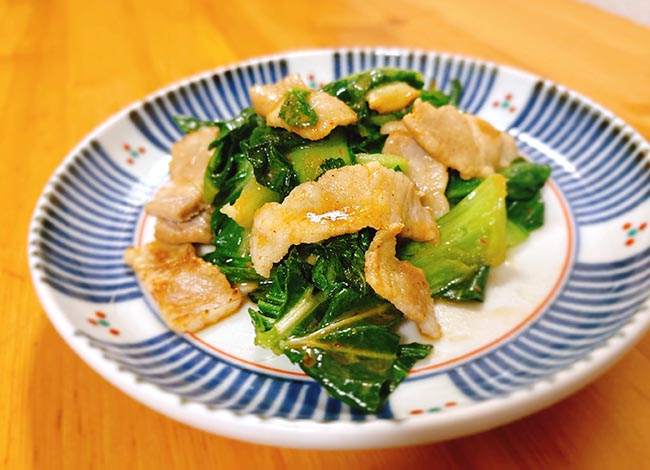 本日の肴〜ターサイと豚肉炒め、厚揚げ焼き
